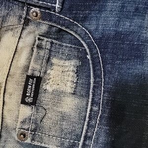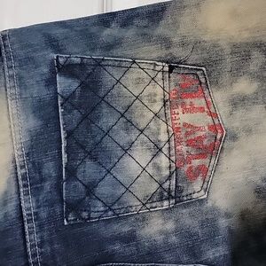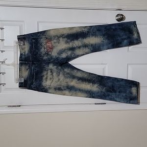 relaxed fit very comfortably jeans. Never been worn before. theses jeans are a steal.