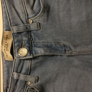 super soft jeans. 5 pockets with belt loops. sparkly accents on button fly and tips of pockets. zipper fly.