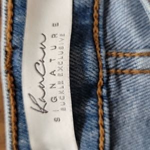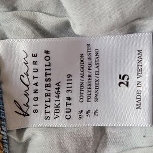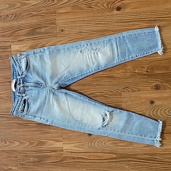 Kancan Signature Exclusive Mid-rise ankle skinny jeans with worn areas and frayed ends. Soft and stretchy
