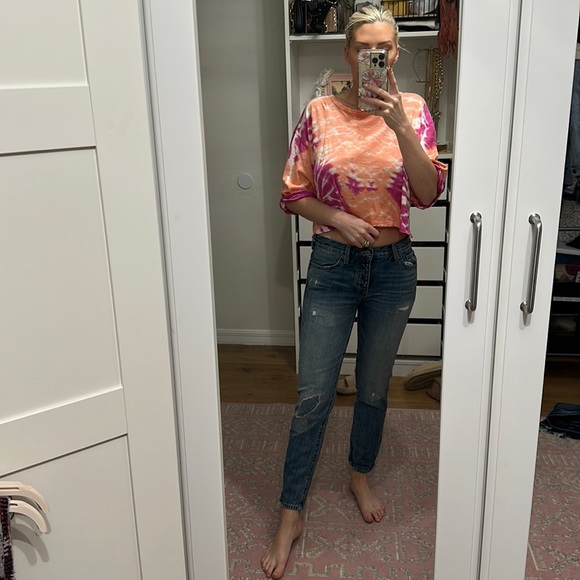 Sienna slim boyfriend. Fun detailing on knee and upper waist.