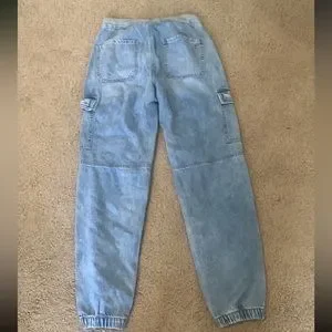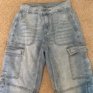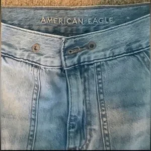 Mom style American Eagle jeans. Tight at waist, loosens down thighs and legs, cuffed at ankles. Several pockets including two pockets at the thigh. Gender Neutral. No tags but not used. Not sure of original price but American Eagle Jeans usually sell anywhere from $40-$70 and I know they were above $40.