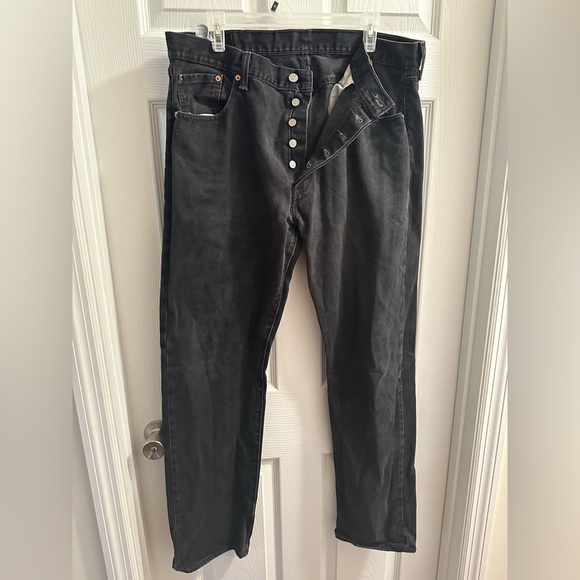 Black button fly jeans with slight wear to the tag on the back as photographed W38 L34