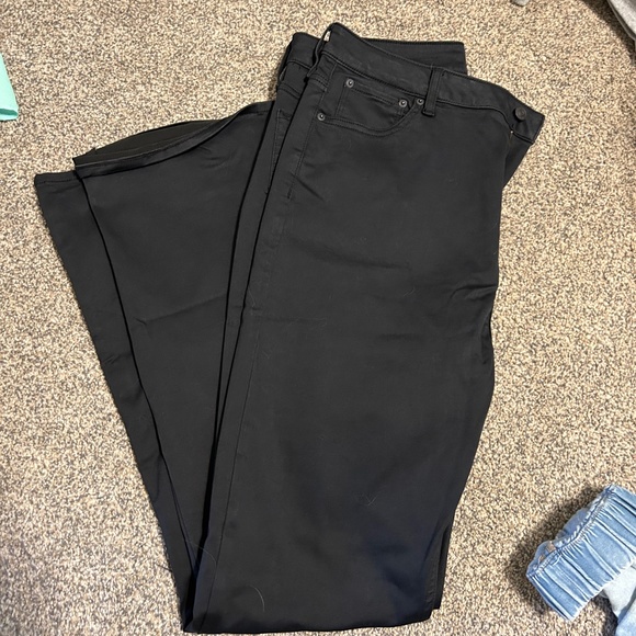 Size 32. Flare. Extremely long on me (5’4”) otherwise cute and comfortable fit.