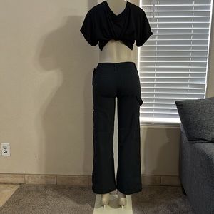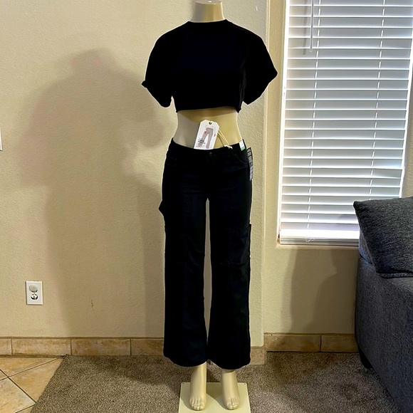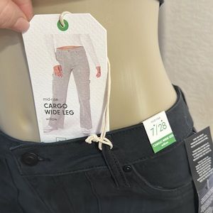 Cargo jeans , mid rise, wide leg, maniqui wear size 7
