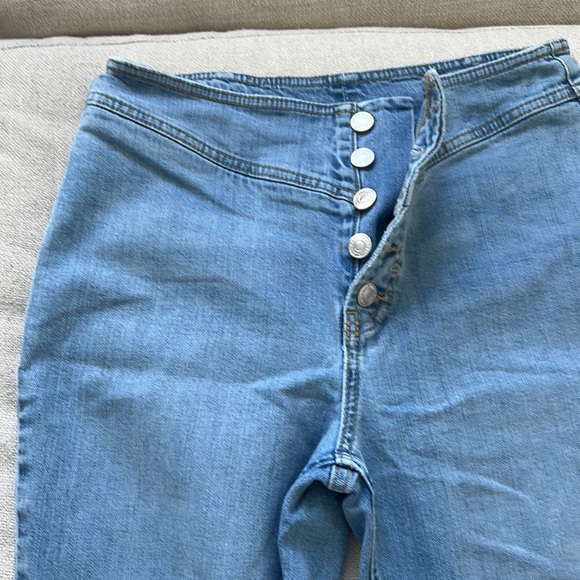 Vintage-looking button fly jeans. Boot cut. Unknown label.