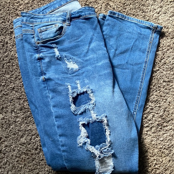 Super soft jeans with ripped detail. No skin shown due to fabric being behind rips.