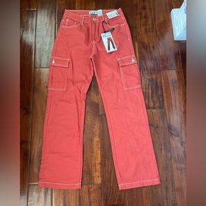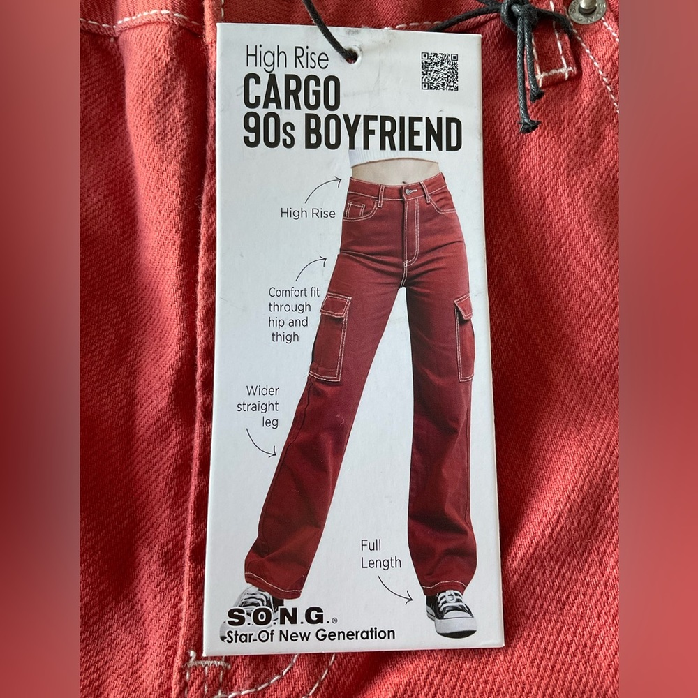 S.O.N.G. High rise cargo 90s boyfriend jeans. Waist is about 15” rise 12.5” inseam 30.5”. NWT. Size 9/29