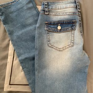 Boot cut, mid rise, straight leg, 1 pair has double button closure
