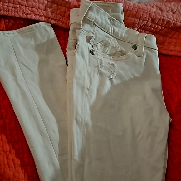 Rock and republic jeans size 4.Cream in color.some distressing by pocket that is how they came brand new washed in woolite and air dried.