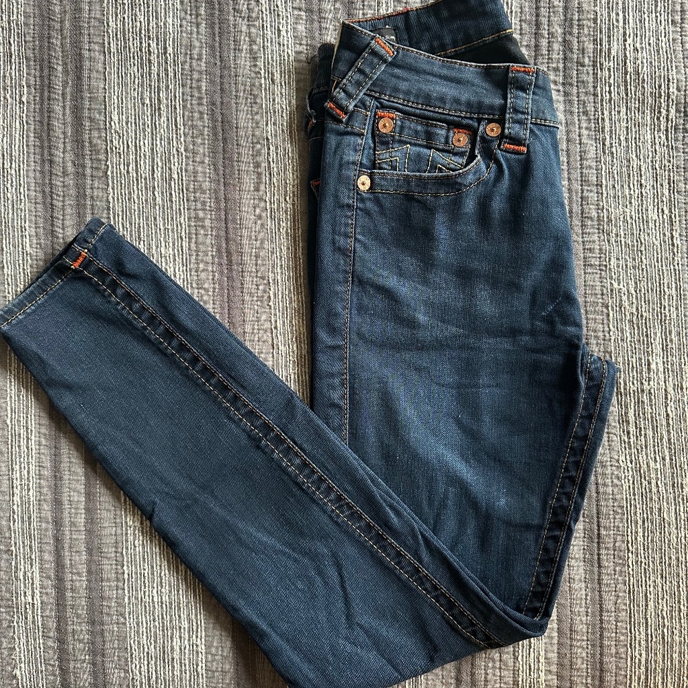(Worn once) These jeans are very detailed, down to the red/ orange threading on the sides of the pants, the height of these pants go up to the belly right in the middle. They are curvy skinny jeans love these. They fit me I just never wear them I’m 5’1 and weigh 135