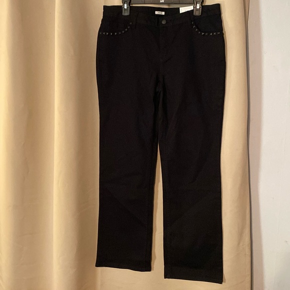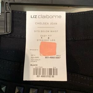 Liz Claiborne women’s size 12 Chelsea jeans NWT. One button with zipper closure.. 5 pocket/4 with studs..sits below the waist..straight leg..stretchy.