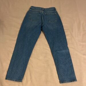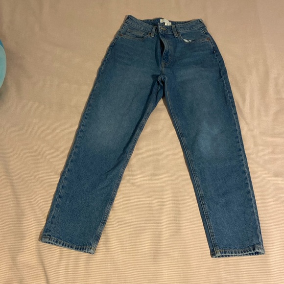 From H&M but the quality is amazing. Very thick demon super cute straight leg jeans. Dark blue color.