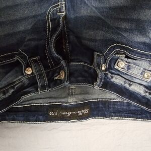 Stella in dreams juniors 11/30. Rhinestone students pockets front and back. Rhinestone pockets in back. Light blue.