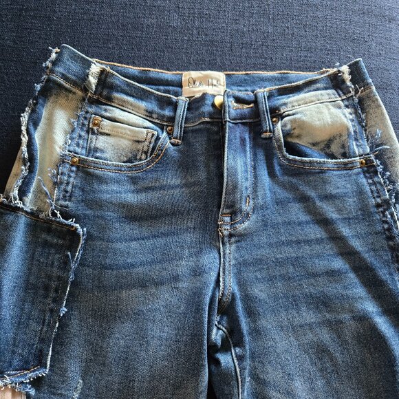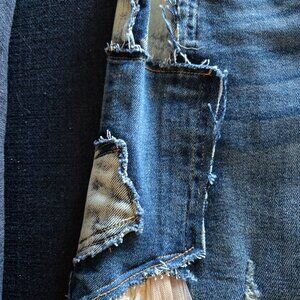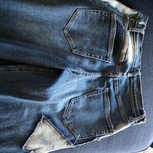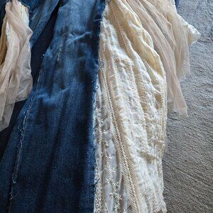 Non smoking home. Worn once for photo shoot. Approximately measurement are hips 18. Waist 13.5. Inseam 32. I wear size 10 to 12. Fit great. Lace details. Wide leg. Distressed. Cotton. Polyester. 2% spandex. Questions please ask. Beautiful jeans.