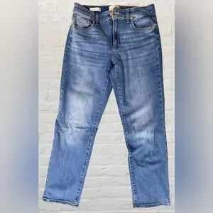 High rise slim straight blue jeans, soft comfortable material. Ankle length, like new.