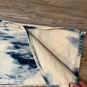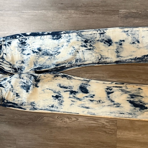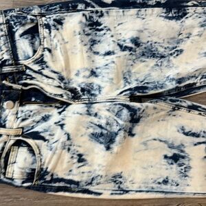 Stylish tie-dye jeans in blue and cream. Perfect for a trendy look.