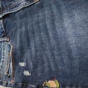 NWT dark wash, stretchy jeans with beautiful floral embroidery. Boyfriend fit, some distressing. Ankles can be rolled or unrolled.