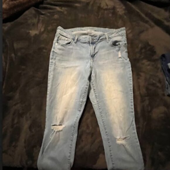 Old Navy Rockstar low rise skinny jean, Size 14, stretchy, distressed knees