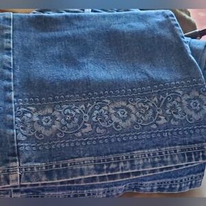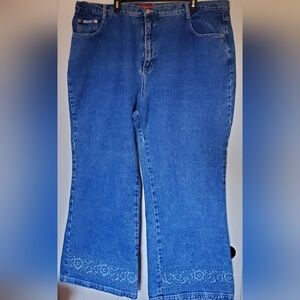 They are a bootcut or flare style with a wide leg opening, and feature embroidered details around the hem, consistent with vintage or Y2K styles associated with the brand.