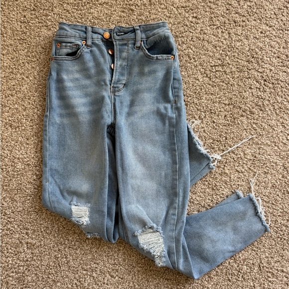 Ripped, button fly jeans