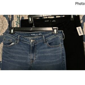 Bundle of two, Mid-Rise Rockstar Super-Skinny Jeans from Old Navy. Both size 14, one blue pair and one black pair, NWT. Blue pair is like new, no holes, stand, snags, etc.
