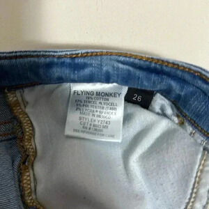 Flying monkey, platinum jeans, size 26. Have stretched to them. Regular length.