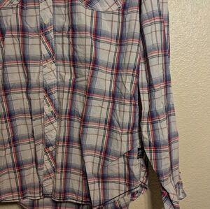 Stylish plaid button-up shirt with a classic design. Features a mix of colors for a versatile look.