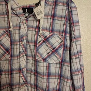 Jeans By Buffalo Plaid Button-Up Shirt Combo Hoodie Size Xl NWT