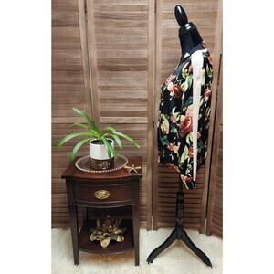 Jeans By Buffalo Womens Size Large L Retro Floral Rose Zip-Up Black Jacket