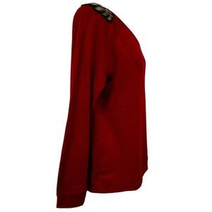 Jeans By Buffalo XL Embellished Beaded Shoulders Knit Top Crimson Cotton NEW
