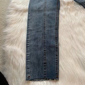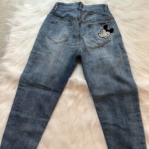 Jeans F.A.Shion High Waist Slim Raw Hem Mickey Mouse Embroidered Patch Size 24