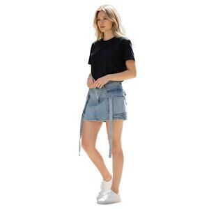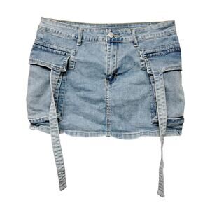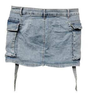 Jeans F.A.shion Denim Mini Skirt Size Large Cargo Pockets Belt Loops Light Blue