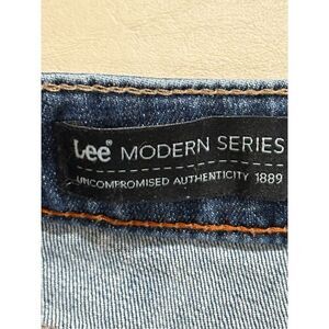Jeans, Lee Womens Jeans, Modern Series, Curvy Bootcut, Waist 28", Blue Denim, Medium Wash. Comfy, Classic, Casual. These jeans check all the boxes! Cotton denim, machine washable. Easy Care. Waist: 28". Inseam: 28". Front rise: 8.5". Back rise: 15". 5 pocket style. embellished back pockets. belt loops.
