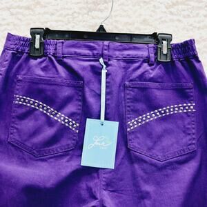 Jeans Women Size 8 Straight Leg Purple Silver Studded Casual Vibe 5 Pocket NWT
