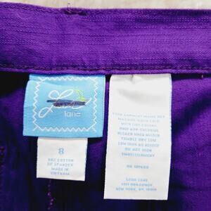 Description: Make a statement in these Lark Lane Lara Purple Straight Leg Jeans! Featuring a rich purple hue with silver-studded back pockets, these jeans combine vintage charm with modern edge. The straight-leg cut flatters all body types, while the elastic back waistband ensures a comfortable fit for all-day wear.
