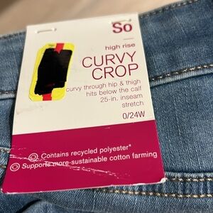 Brand new with tag. So brand. Women size 0 24. High rise curvy crop. Distressed. See pics for measurements.