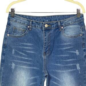 Jeans Womens Bootcut Jeans Whiskering Denim High Rise 5 Pockets Medium Wash M