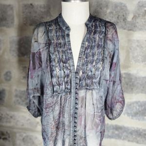 Jeans by BUFFALO sz L petite sheer button front 3/4 sleeve blouse