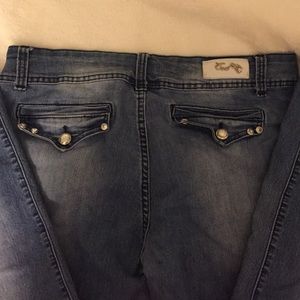 So I have these jeans only have worn them a few times. They have rhinestones on them and have 2 pockets in the front none in the back