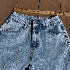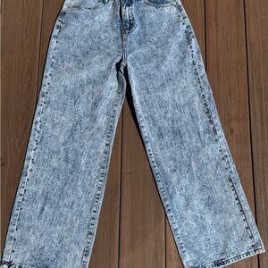 Trendy wide-leg jeans with an acid wash finish. Perfect for casual wear.