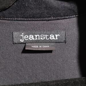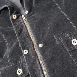 Jeanstar Black Velvet Flap Pocket Jacket Y2K Dark Academia Grunge Goth Womens Large retro gothic goth steampunk punk velour blazer coat zip snap pockets vamp professor student collegiate neutral cotton blend stretch