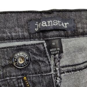 Jeanstar denim jeans, 5 pocket style, black charcoal wash, straight leg, zip fly, with stretch, size 10 short