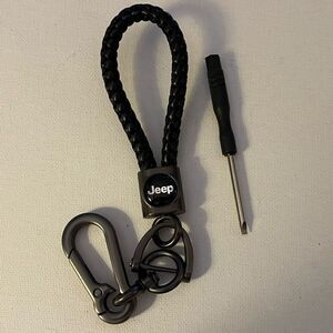 Jeep Logo Black Leather Rope Fob Keychain NWT