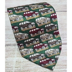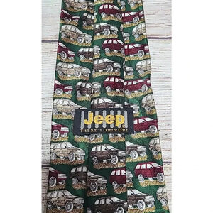Jeep Men's Neck Tie Green Red Beige 100% Silk 60" x 3.5" Made in the USA