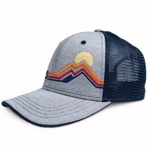 The essential laid-back Jeep® vibes hat! The Jeep® Mountain Stripe Embroidered Mesh Cap Hat is constructed with the softest fabric front with a breathable navy mesh back and a plastic snap closure for customizable comfort.