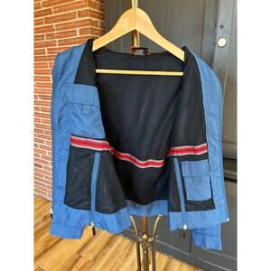 Jeep polyester jacket; features multiple interior flap pockets with hook and loop closure, side vent zippers, exterior pockets and detailed utility styling. Excellent condition, lightweight yet structured, perfect for casual or outdoor wear.
