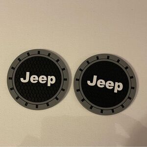 Jeep cup Coasters in black and gray New in Pack ◦ Set of 2 cup Coasters • anti slip, high quality silicone, wipe clean with water / aftermarket • bundle and save on shipping • Shipped quickly, normally in a day See pictures for details and size. Smoke free and pet free shop Thanks for shopping in my closet