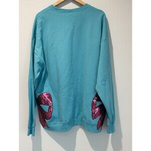 Jeezbees Blue Sweatshirt With Pink Sequin Bow With Bow Slits On The Side Side 2X