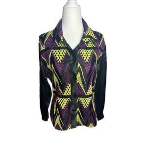 Jeff Galliano Vintage Neon Green Purple Black Ella Satin Blouse Made in France