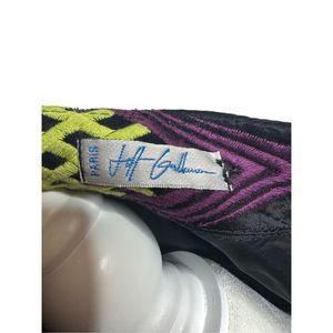 For sale is this Jeff Galliano Vintage Neon Green Purple Black Ella Satin Blouse Made in France. This top is in great condition! There is no size tag, estimated to be around a small. We suggest using the measurements to compare to your favorite blouse to ensure a perfect fit.
